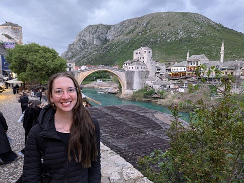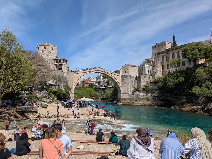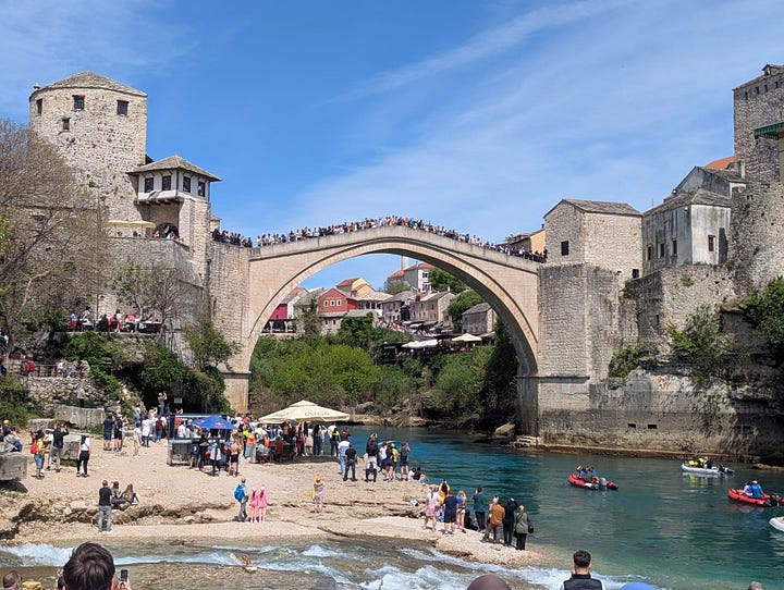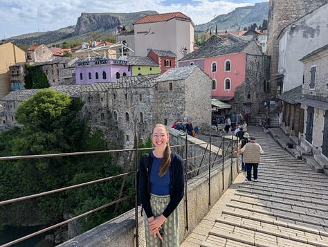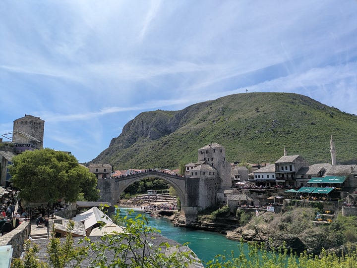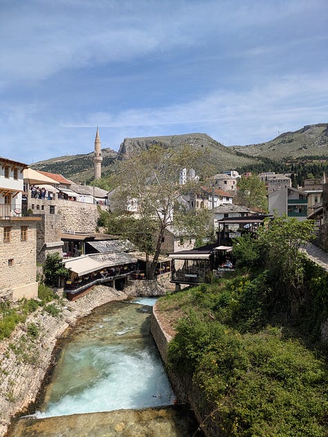 The journey to Mostar was stunning with steep mountains, blue rivers, and villages dotting the countryside. We appreciated the sight of new green leaves on the trees - spring has sprung in Herzegovina!