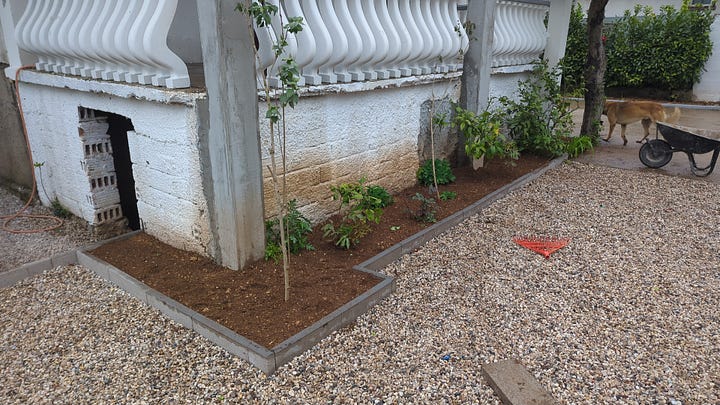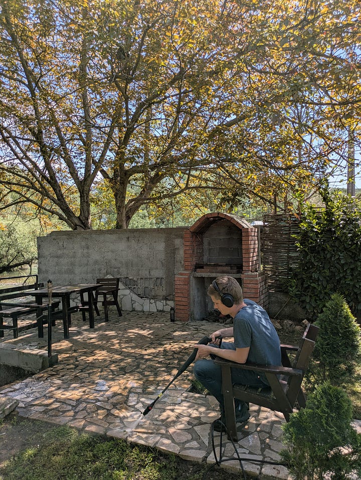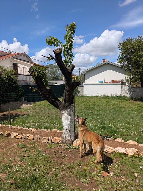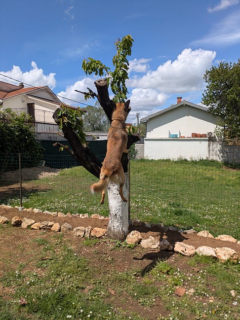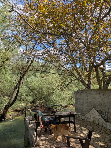 After arriving in Blagaj, we had Bosnian coffee and chatted for a couple hours. Megan is from Ireland and met Faris a few years ago when she was travelling the Balkans. They are living in Faris’s riverside family home in the historic town of Blagaj which has a monastery that attracts bus loads of tourists (typically coming up from the nearby Dubrovnik). Faris’s family have now all left to live in the nearby city of Mostar, and the young couple is living in the house which is split into a one bedroom apartment on the first floor and a studio on the ground floor. They hope to get some work done on the studio and garden and eventually put the studio on Airbnb. For this reason as well as to make connections and share culture, they decided to try workaway. We were lucky enough to be their first workaway guests! They have two dogs and two cats; all four are very friendly. Mickey, a belgian malinois, is absolutely obsessed with fetching anything (even small pieces of garbage or foam). He is so persistent that it is difficult to get much done as he insists for his toys to be thrown (often he’d come and put a toy in a wheelbarrow we were filling with soil, for example). Faris even told us to put toys in trees, just slightly out of Mickey’s reach so that he could be distracted and tire himself out for a while jumping under the tree - which is also quite entertaining to watch.