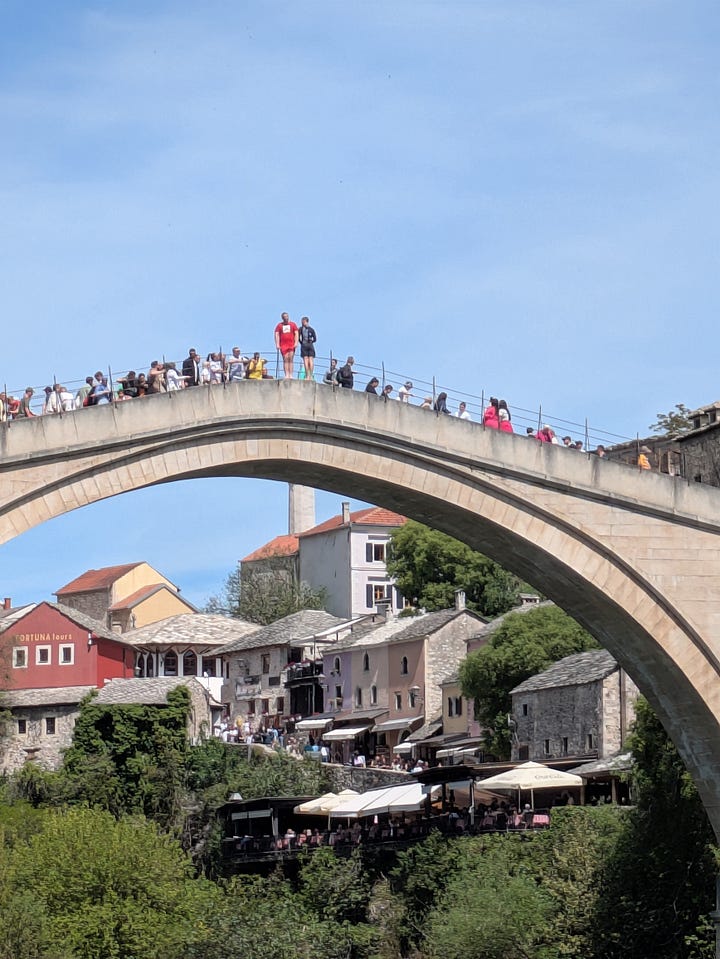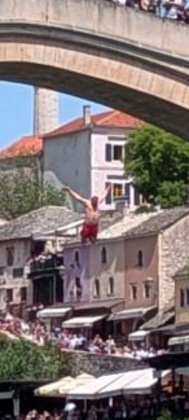 After our interesting, but sad tour we wandered down in the bright sunshine to watch people jump off the bridge as well as the practice structure. We then continued wandering around the old town and had coffee and then lunch at Faris’s restaurant.