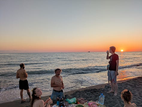 One Thursday evening, the family took us and the two German girls on an evening excursion to he Black Sea. We drove down in the evening in their van and went for a beautiful swim in the ocean. It was Lily’s first time in the Sea and she loved it! It was our second time in the Black Sea and it was amazing swimming around in the light waves. The water of the Black sea is much less salty than the Mediterranean, and we felt surprisingly clean afterwards (not itchy like we usually do after saltwater swimming). After a good swim we came out onto the magnetic black sand beach and enjoyed a delicious picnic on the sand with the sun setting before us. We were even treated to the German girls singing a traditional Georgian song.